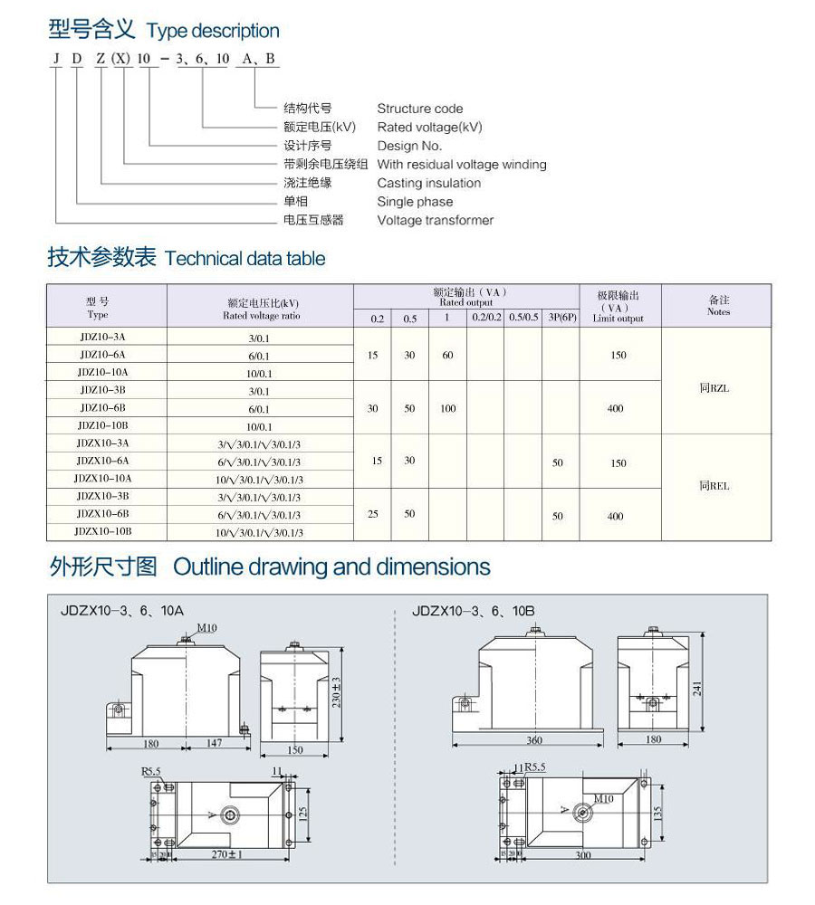 戶內電壓互感器JDZX10-10